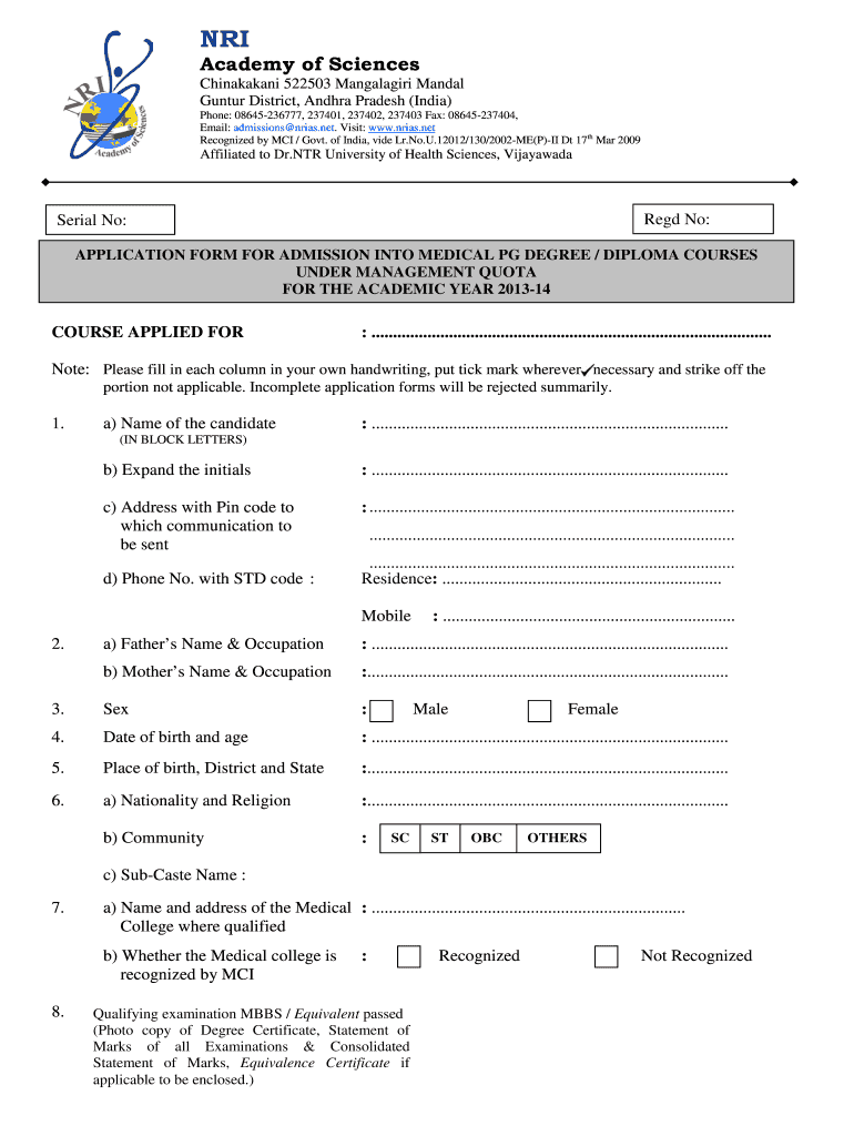Get the free NRI Medical College amp General Hospital - nri academy of sciences - nrias