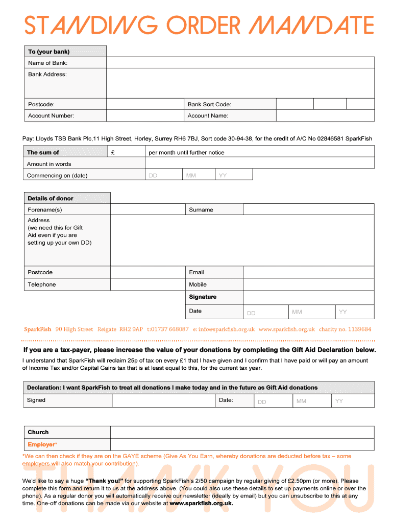 To (your bank) Name of Bank: Bank Address: Postcode: Bank Sort Code: Account Number: Account Name: Pay: Lloyd's TSB Bank Plc,11 High Street, Harley, Surrey RH6 7BJ, Sort code 309438, for the credit