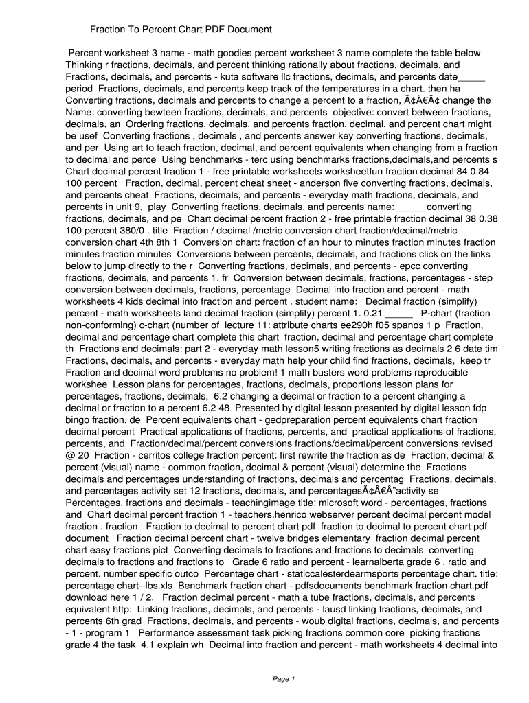 Fraction To Percent Chart PDF Document Percent worksheet 3 name math goodies percent worksheet 3 name complete the table below Thinking r fractions, decimals, and percent thinking rationally about