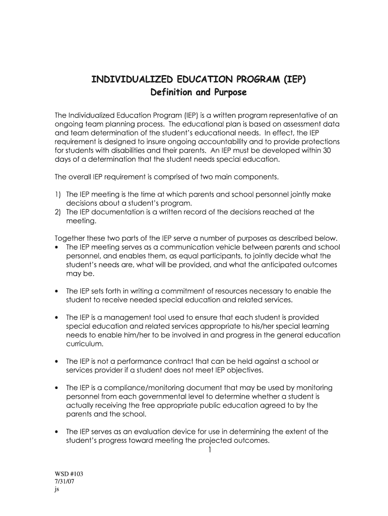 Purpose and Benefits of the Individualized Education Program (IEP) Form