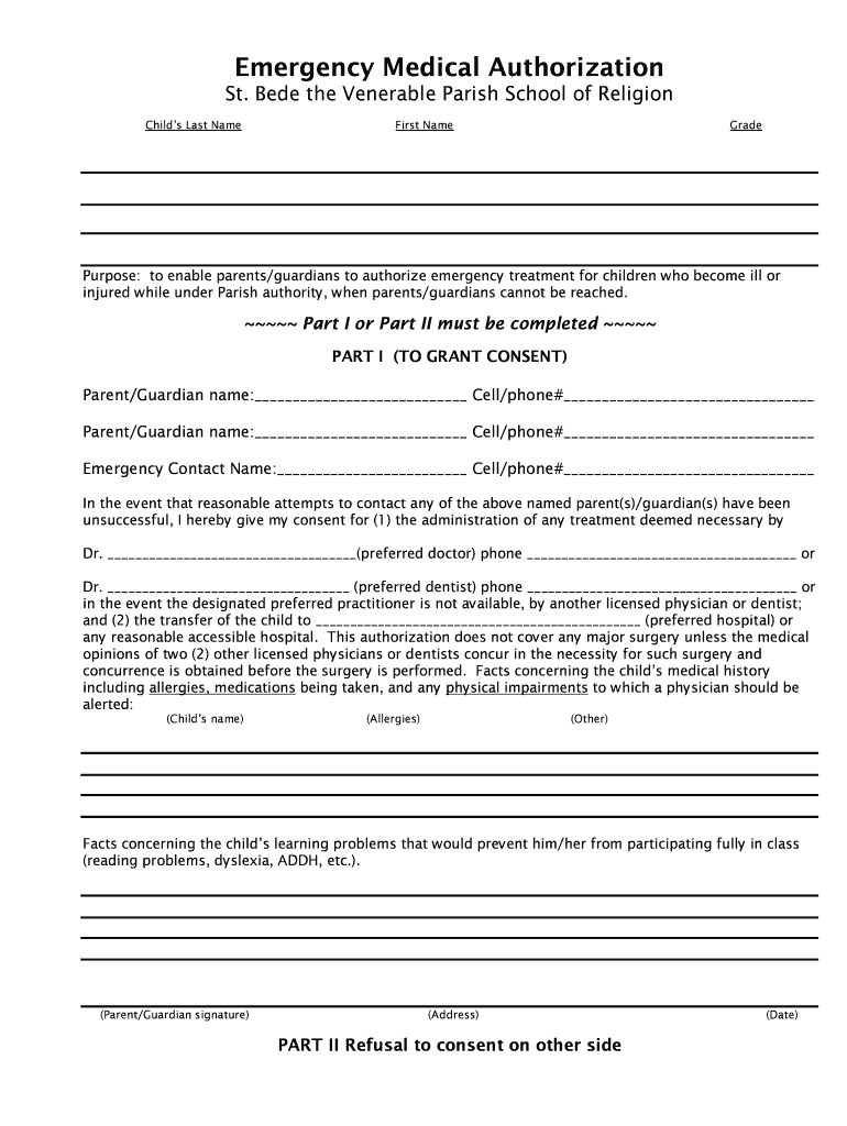 Emergency Medical Authorization St. Bede the ... Emergency Contact Name: ... Microsoft Word — Medical Form.doc Author:
