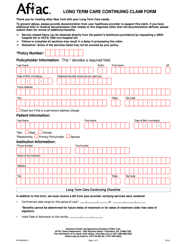 DUCK LONG TERM CARE CONTINUING CLAIM FORM Thank you for trusting Flag New York with your Long Term Care needs. To prevent delays, please provide documentation from your healthcare provider to support