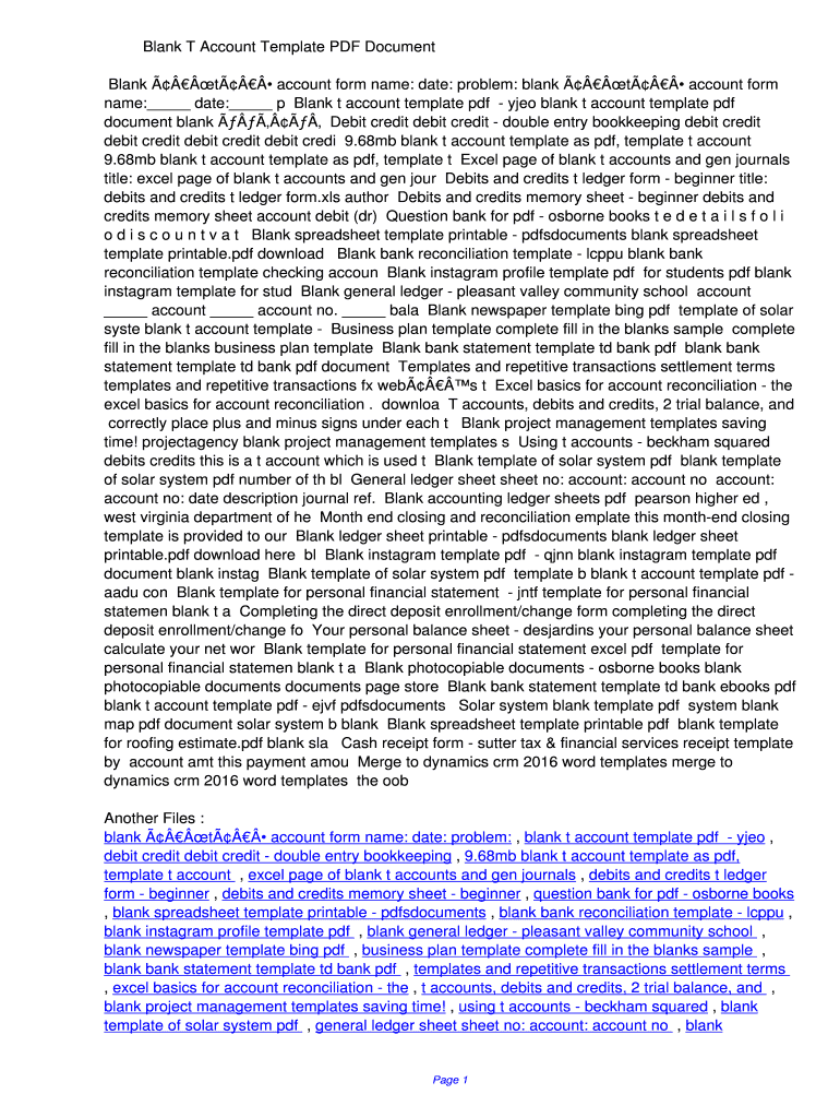Blank T Account Template PDF Document Blank t account form name: date: problem: blank t account form name: date: p Blank t account template PDF yes blank t account template PDF document blank Debit