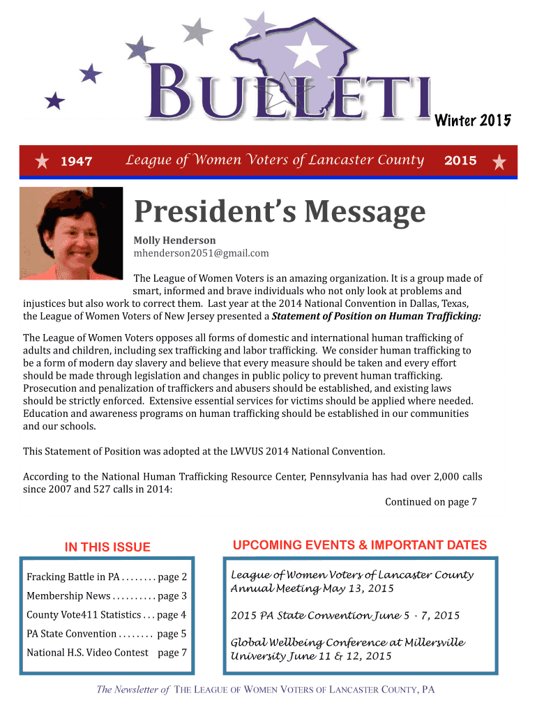 All local League of Women Voters chapters are required to file their newsletters using the lwv newsletter template.