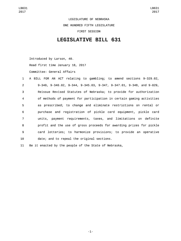 FIRST SESSIONLEGISLATIVE BILL 631Introduced by Larson, 40.