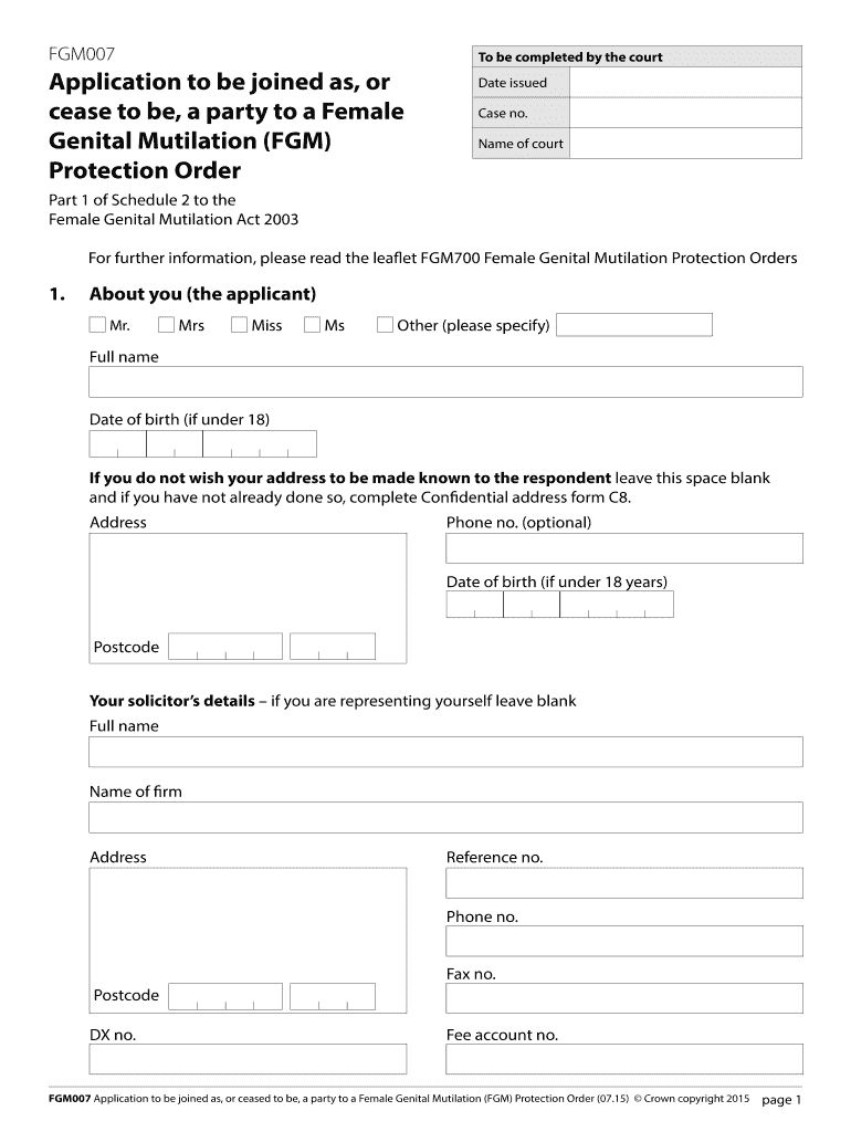 Get the free FGM007 Application to be joined as, or cease to be, a party to a Female Genital Muti...