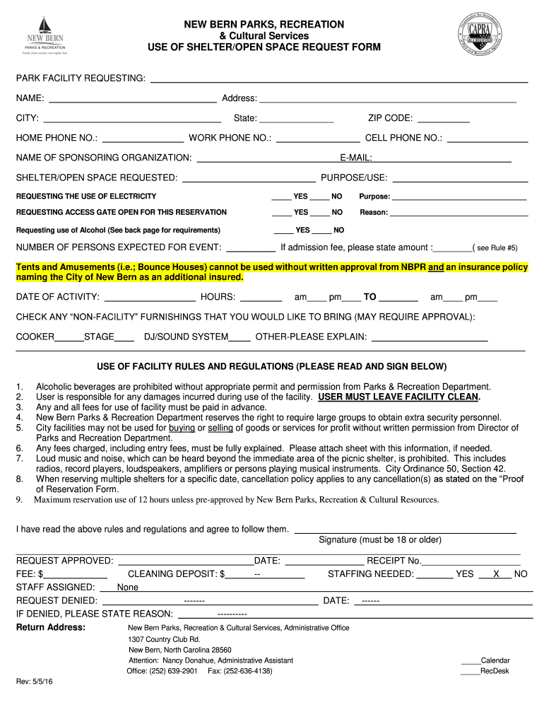 How to fill out new bern parks recreation