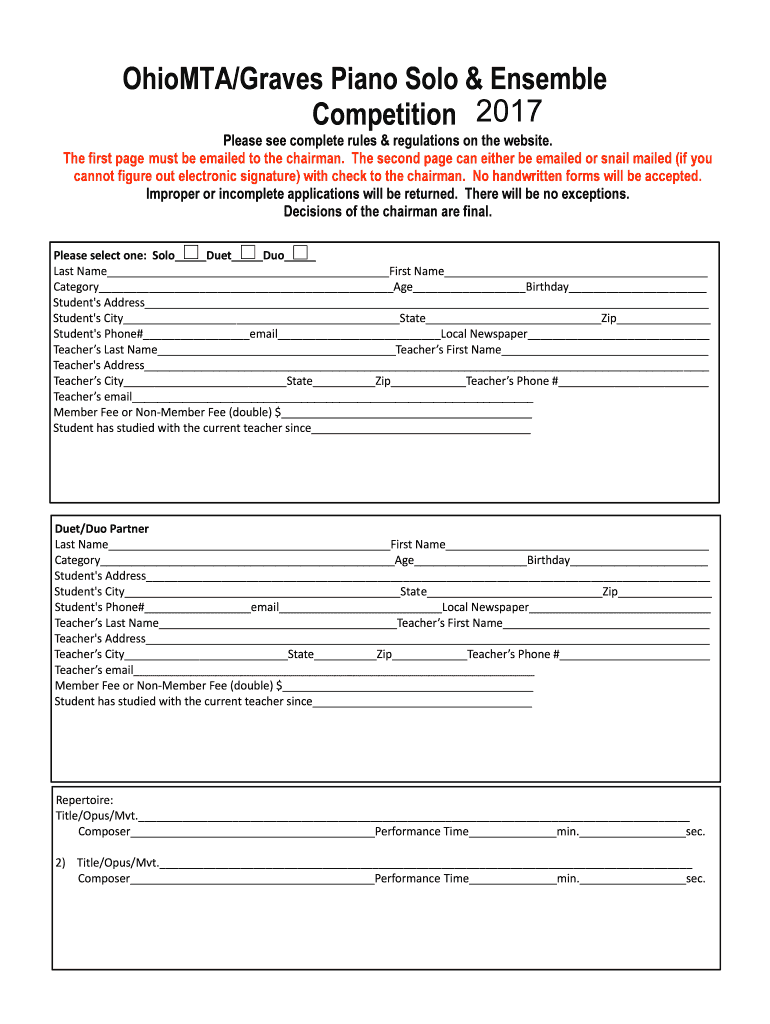 No handwritten forms will be accepted. Improper or incomplete applications will be returned. There will be no exceptions. Decisions of the chairman are final.
