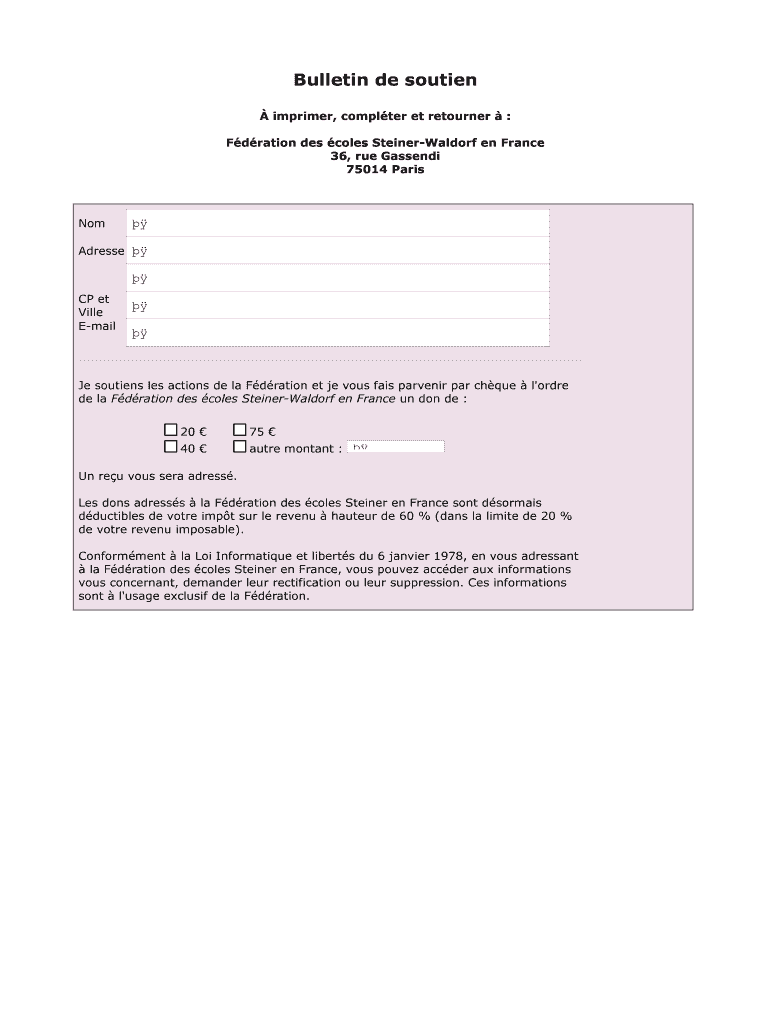 Get the free Bulletin de soutien - F d ration des Ecoles Steiner-Waldorf - steiner-waldorf