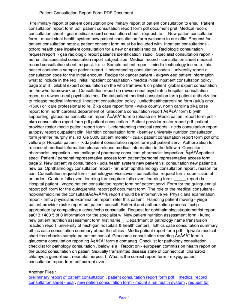 Patient Consultation Report Form PDF Document Preliminary report of patient consultation preliminary report of patient consultation to ensue Patient consultation report form PDF patient consultation