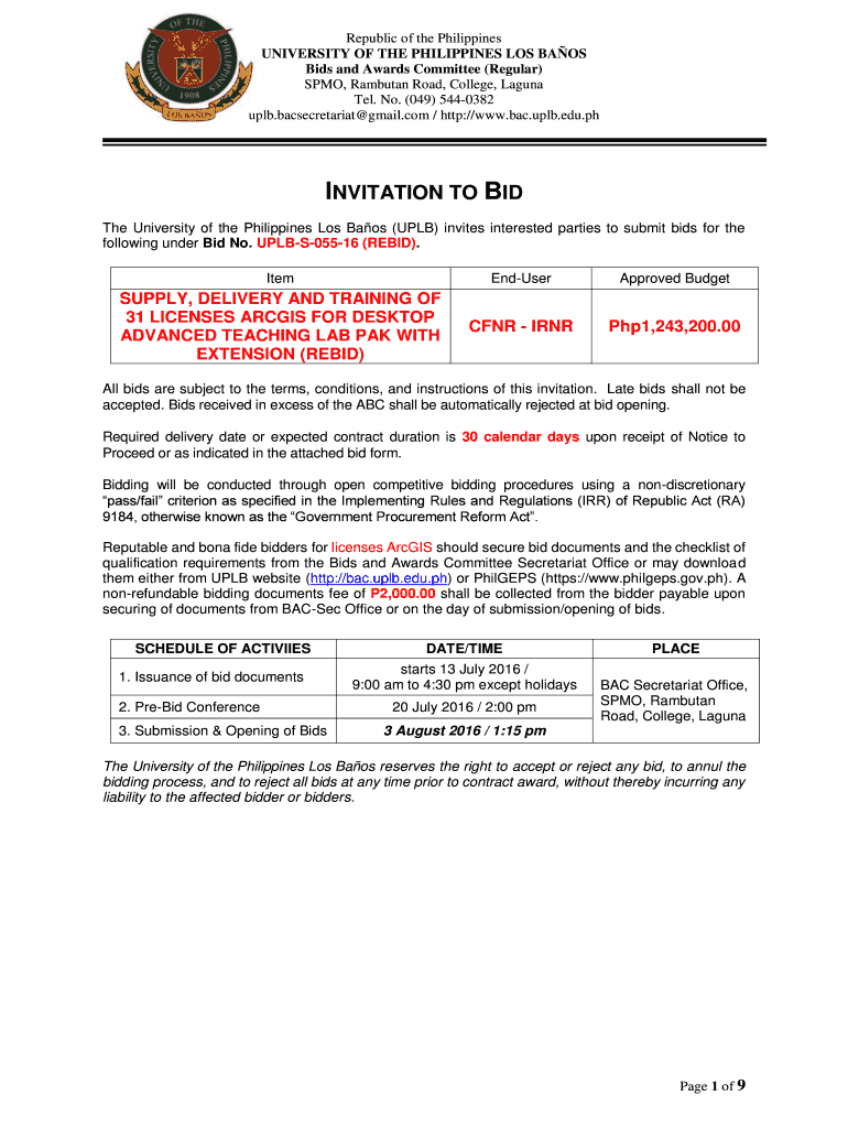 Get the free INVITATION TO BID - bac.uplb.edu.ph