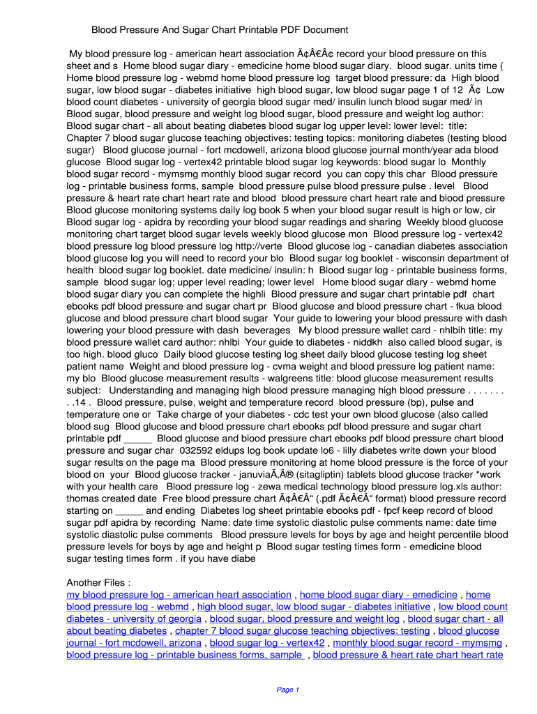 The Blood Pressure and Sugar Chart offers essential fillable fields that include: