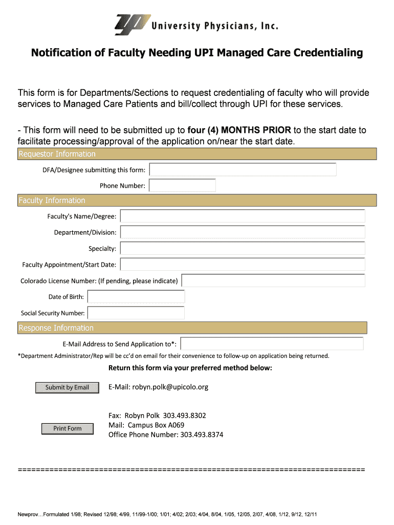 Get the free NOTIFICATION OF NEW FACULTY JOINING DEPARTMENT - ucdenver