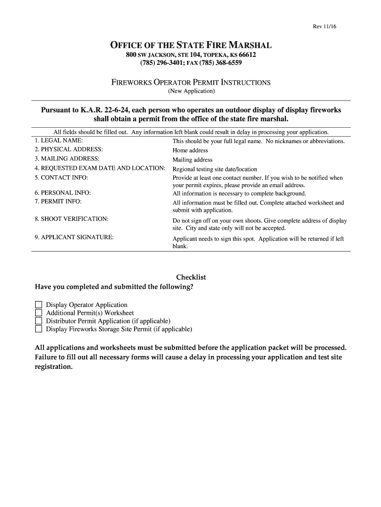 Please provide the distributor permit number that you are operating under. ... the owner of any display fireworks storage facility shall obtain a storage