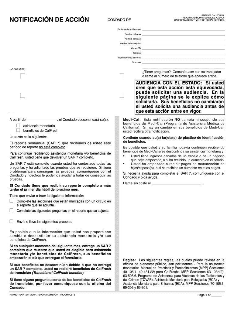 Get the free notificaci n de acci n - California Department of Social Services - dss cahwnet
