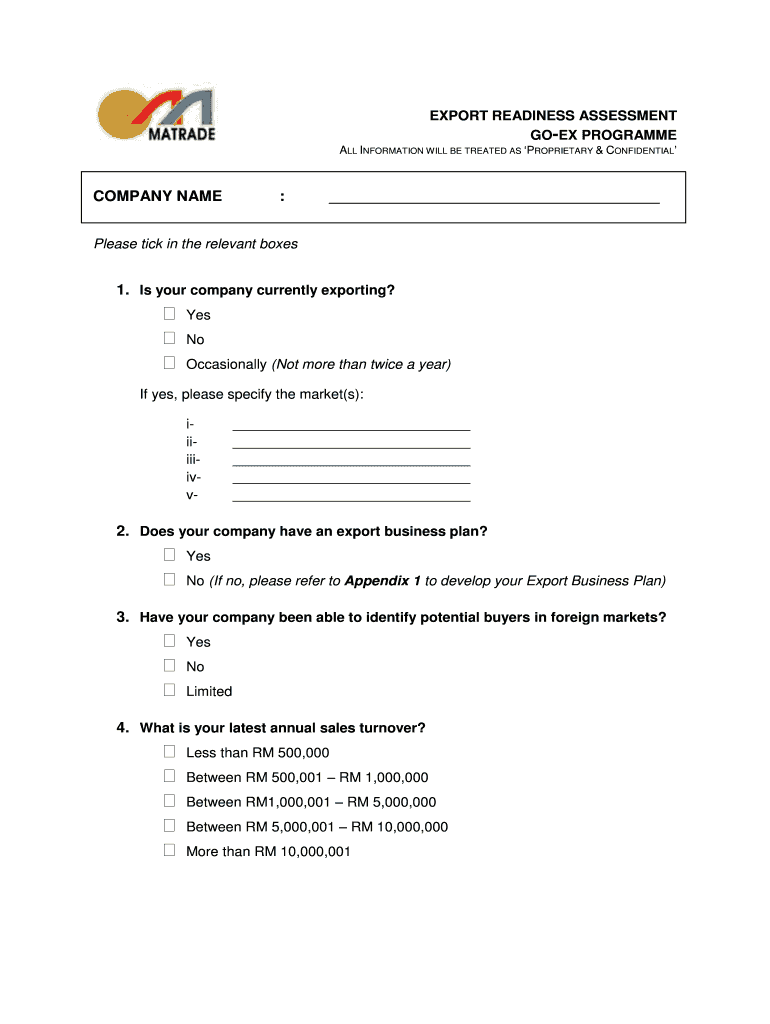 Get the free Export Readiness Assessment (ERA) - MATRADE - matrade gov