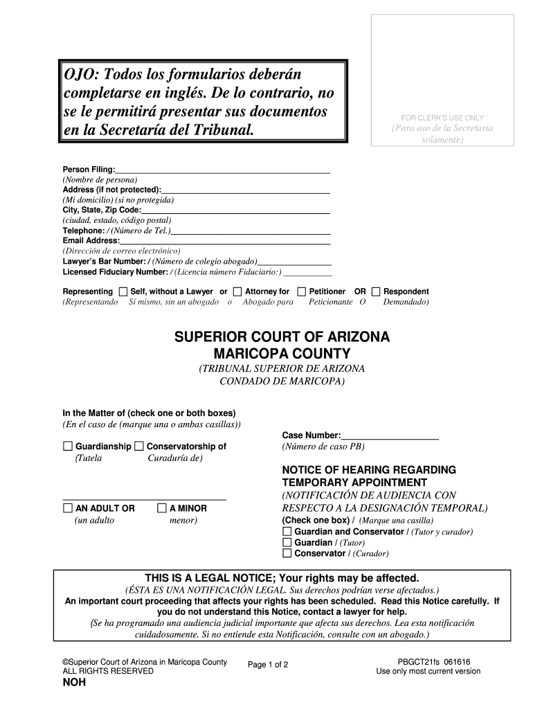 Get the free Notificaci n de audiencia con respecto a la designaci n temporal) (Marque una casill...