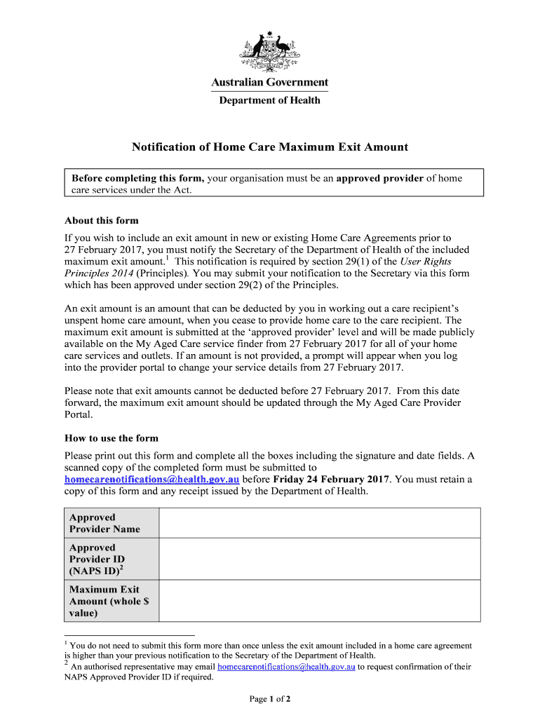 Get the free Notification of Home Care Maximum Exit Amount Form