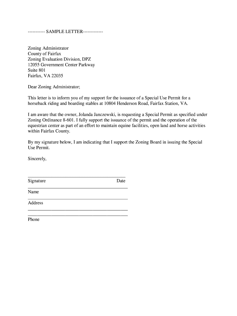Get the free SAMPLE LETTER------------- Zoning Administrator Zoning Evaluation - fairfax4horses