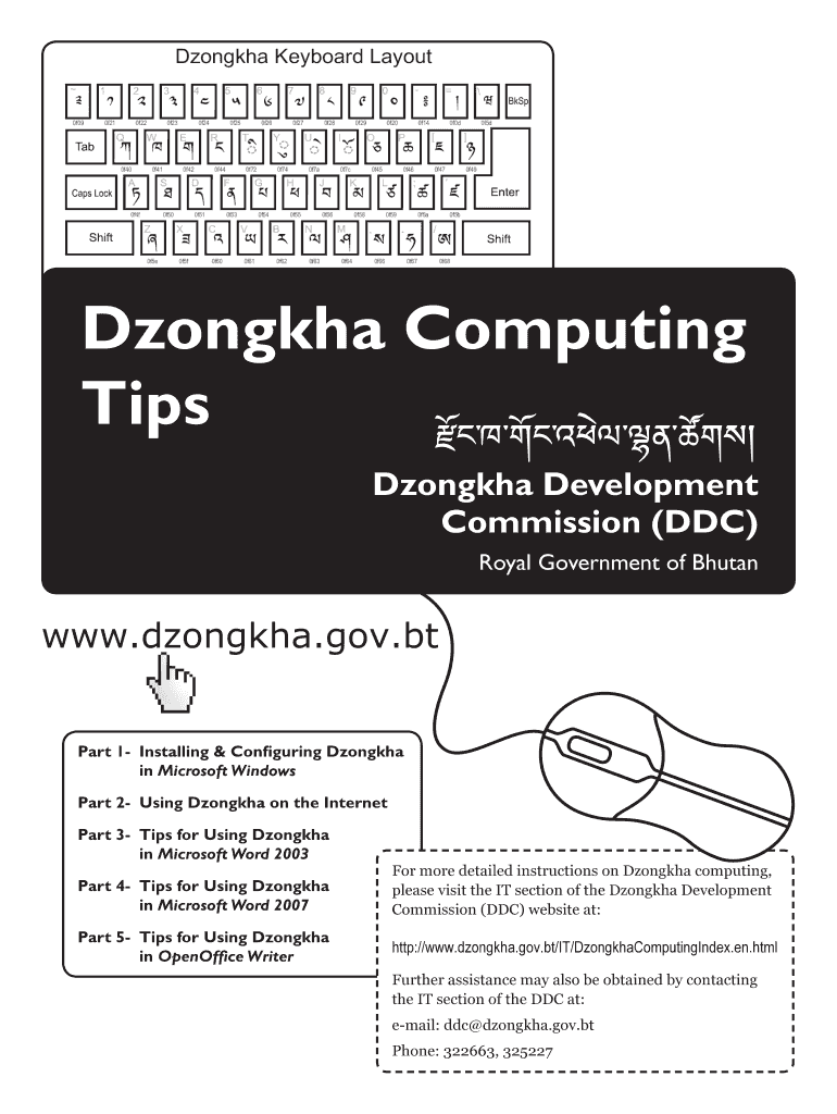 Dzongkha Computing Tips Dzongkha Development Commission (DDC) Royal Government of Bhutan.dzongkha.gov.part 1Installing & Configuring Dzongkha in Microsoft Windows Part 2Using Dzongkha on the Internet