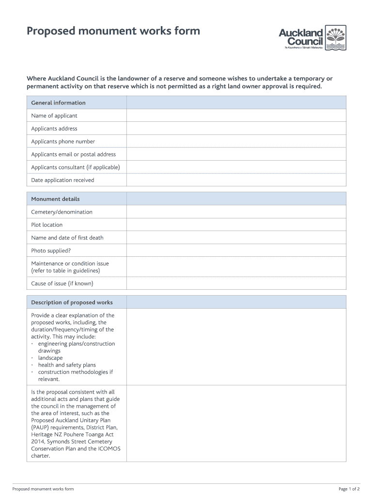 Get the free Proposed monument works form - Auckland Council - aucklandcouncil govt