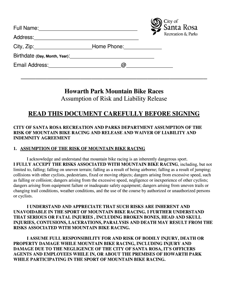 Get the free Howarth Park Mountain Bike Races Assumption of Risk and Liability ... - ci santa-ros...