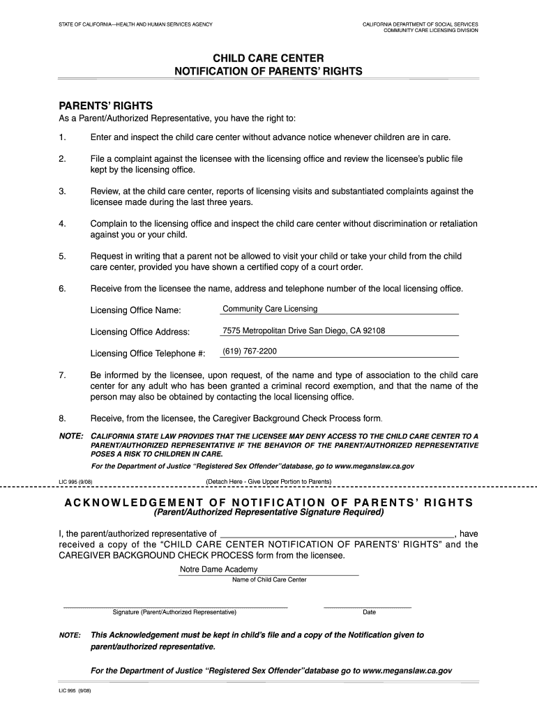 CHILD CARE CENTER NOTIFICATION OF PARENTS RIGHTS ... Background Check Process form. ... a copy of the CHILD CARE CENTER NOTIFICATION OF PARENTS RIGHTS
