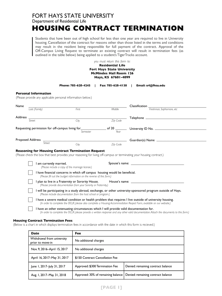 Get the free HOUSING CONTRACT TERMINATION - fhsu