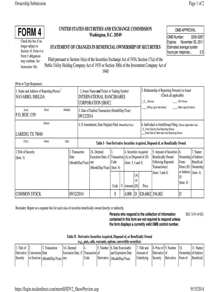 Ownership Submission Page 1 of 2 UNITED STATES SECURITIES AND EXCHANGE COMMISSION Washington, D.C. 20549 FORM 4 Check this box if no longer subject to Section 16. Form 4 or Form 5 obligations may