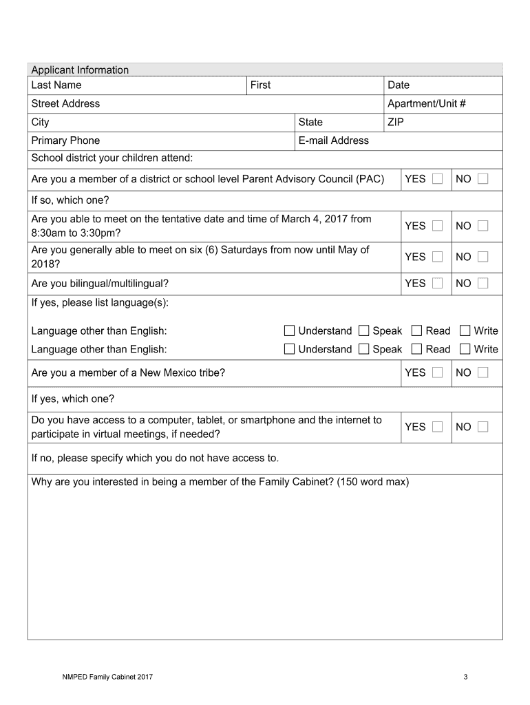 Get the free NMPED Family Cabinet Nomination Form 1.17.17 - ped state nm