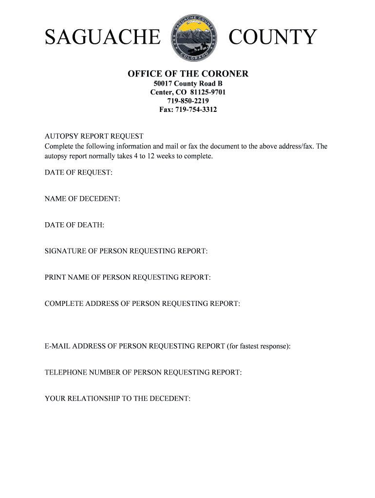 How to fill out saguache county autopsy request
