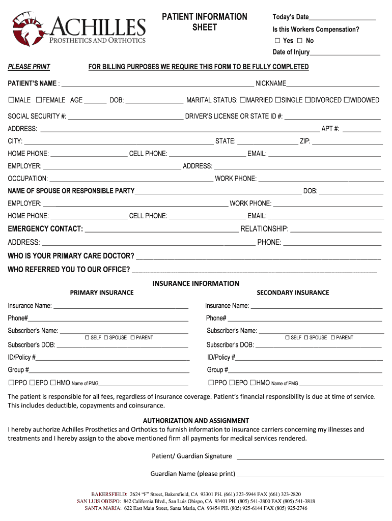 Get the free PATIENT INFORMATION Today s Date SHEET