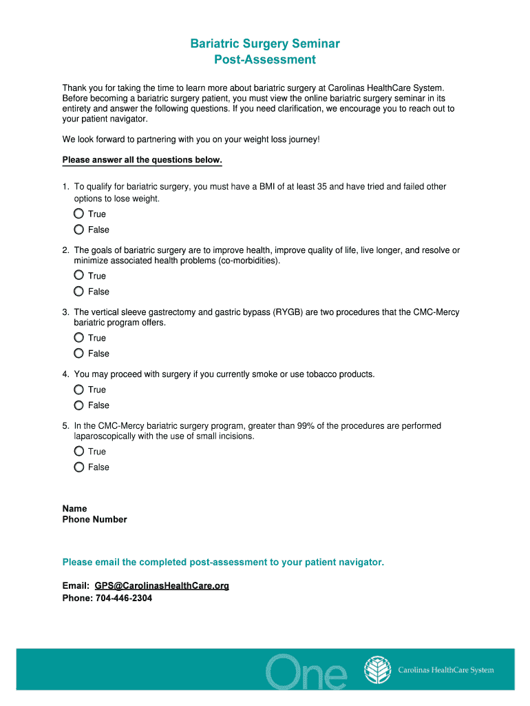 Get the free Bariatric Surgery Seminar Assessment Boeing LV - carolinashealthcare