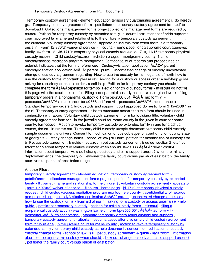Temporary Custody Agreement Form PDF Document Temporary custody agreement element education temporary guardianship agreement i, do hereby GRA Temporary custody agreement form pdfslibforme temporary