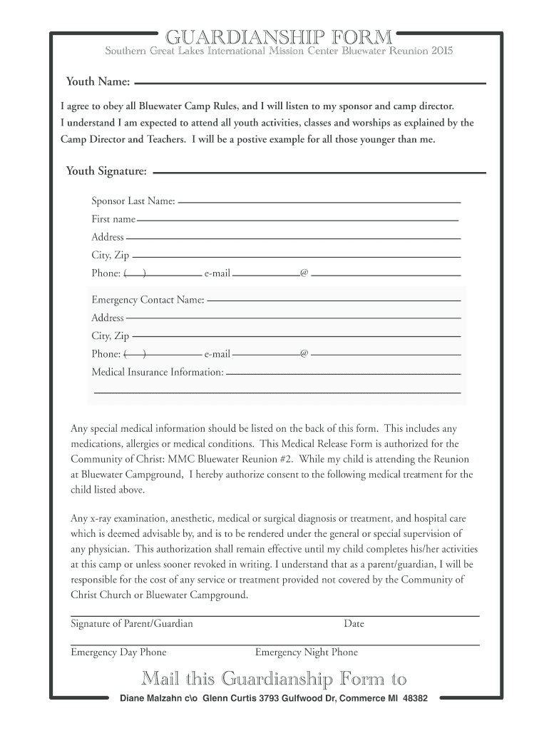 Get the free 2015 Guardianship form - Community Of Christ Michigan Mission ... - cofchristmi