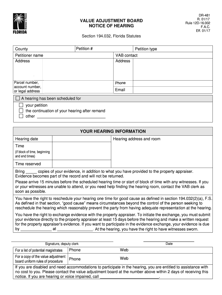 Individuals who are involved in a dispute or legal matter that requires a hearing before the VAB (Value Adjustment Board) need a notice of hearing VAB.