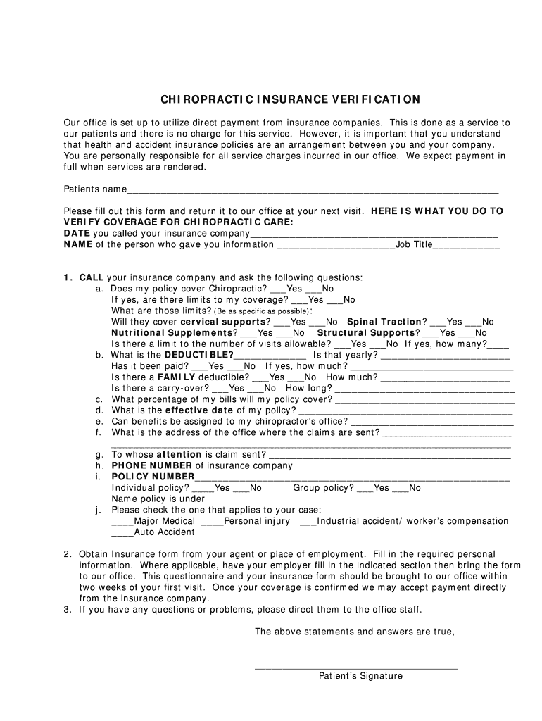 Chiropractic facilities and providers are required to file chiropractic insurance verificationdoc for each patient.