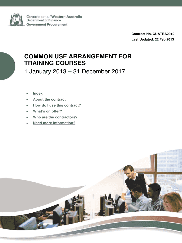 Contract No. CUATRA2012 Last Updated: 22 Feb 2013 COMMON USE ARRANGEMENT FOR TRAINING COURSES 1 January 2013 31 December 2017 Index About the contract How do I use this contract? What's on offer?