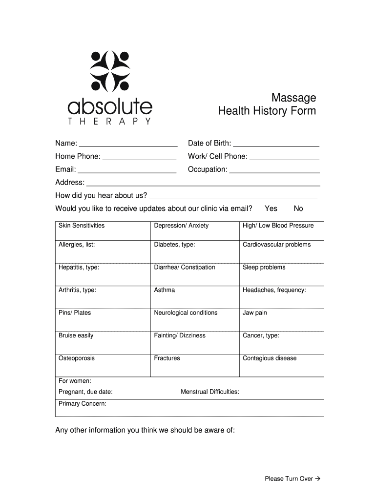Anyone who is seeking a professional massage therapy session needs to fill out a massage health history form.