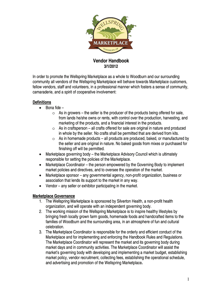 Get the free Wellspring Marketplace Vendor Handbook.doc - silvertonhealth