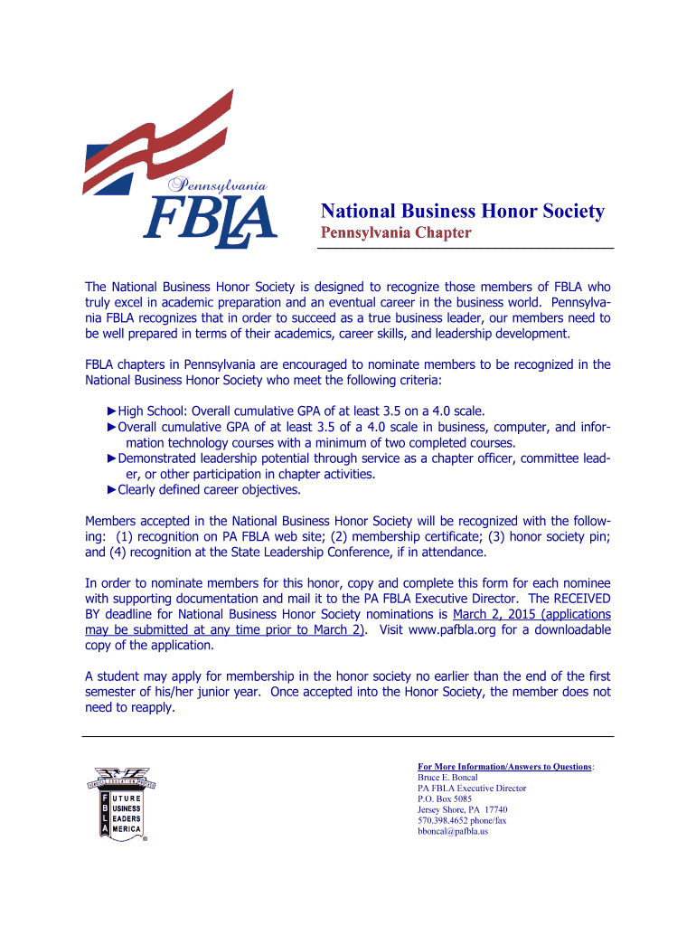 The National Business Honor Society is designed to recognize those members of FBLA who