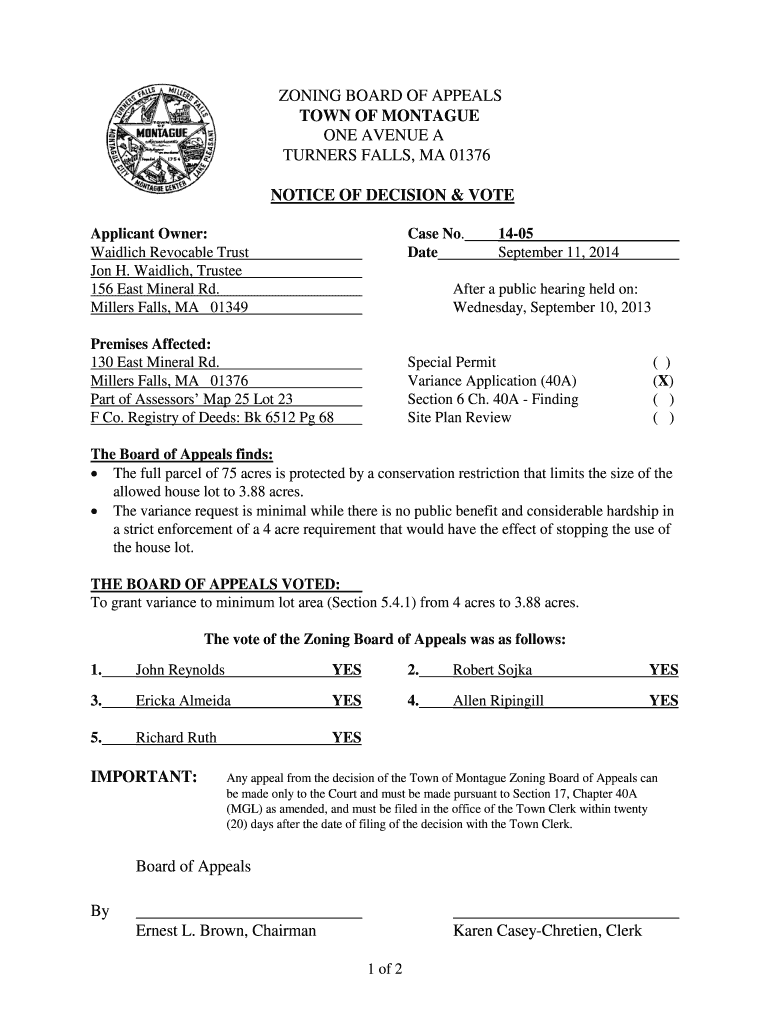 Get the free NOTICE OF DECISION - montague-ma.gov