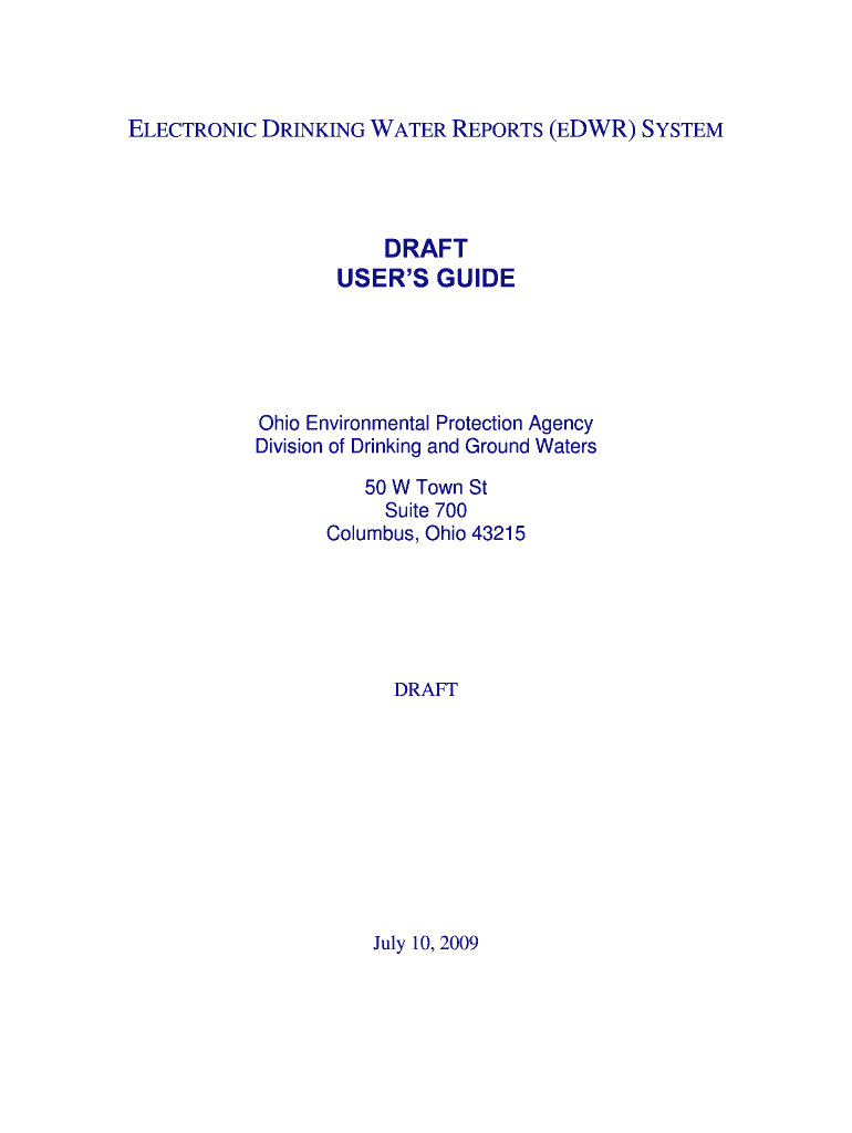 ELECTRONIC DRINKING WATER REPORTS (EDW) SYSTEM DRAFT USERS GUIDE Ohio Environmental Protection Agency Division of Drinking and Ground Waters 50 W Town St Suite 700 Columbus, Ohio 43215 DRAFT July