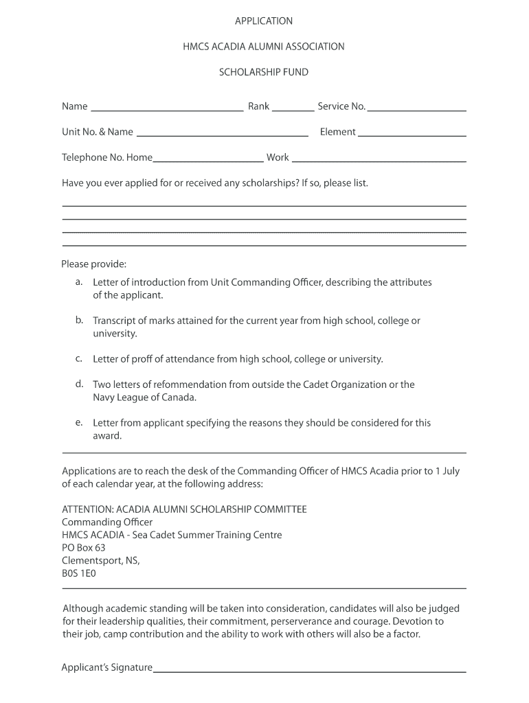 Get the free Application Form - HMCS Acadia Alumni Association - hmcsacadia