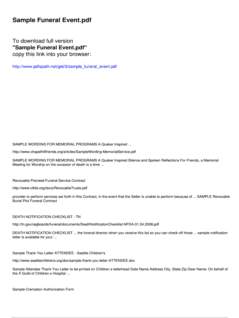 Sample Funeral Event.pdf To download full version “Sample Funeral Event.pdf copy this link into your browser: http://www.pdfspath.net/get/3/sample funeral event.pdf SAMPLE WORDING FOR MEMORIAL PROGRAMS
