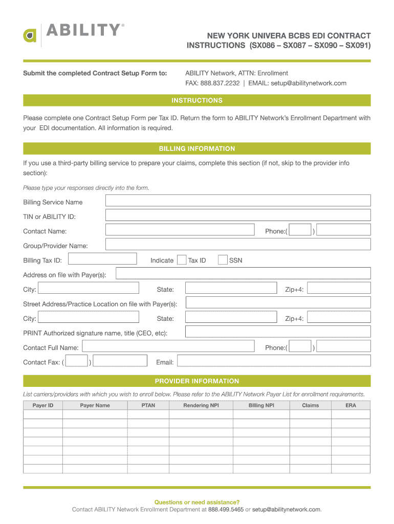 Get the free NE YOR UNIVERA BCBS EDI CONTRACT INSTRUCTIONS (SX086 ...