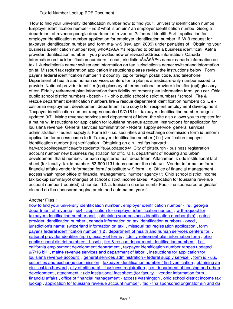Tax I'd Number Lookup PDF Document How to find your university identification number how to find your. University identification number Employer identification number IRS 2 what is an? An employer