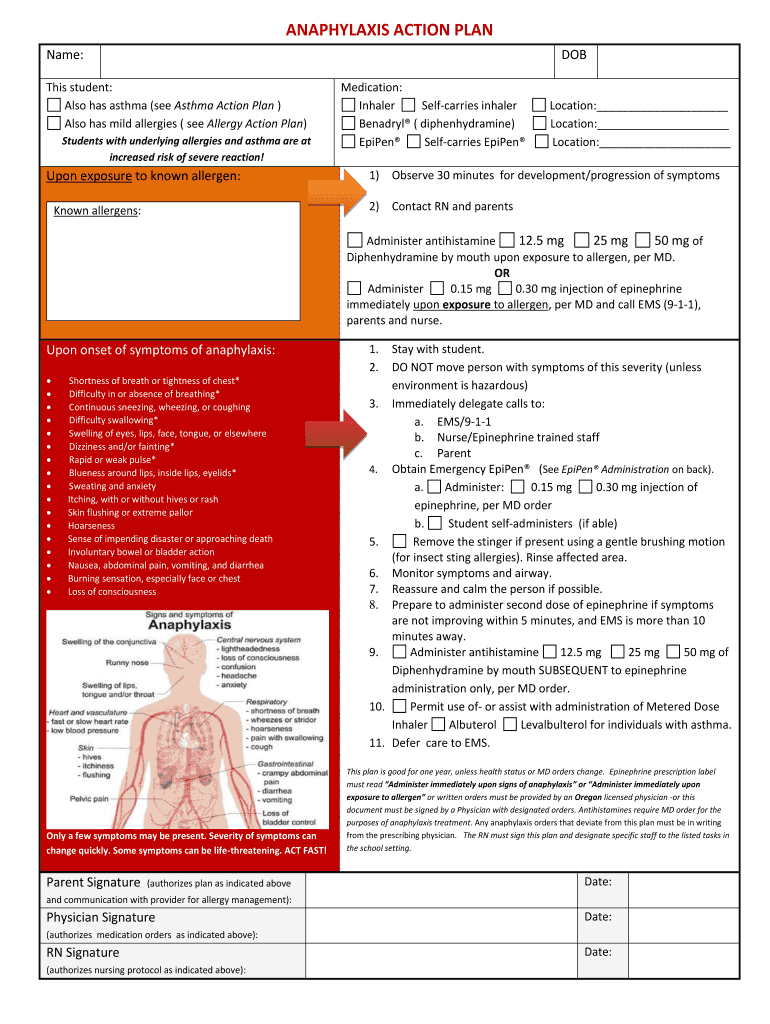 How to fill out anaphylaxis action plan