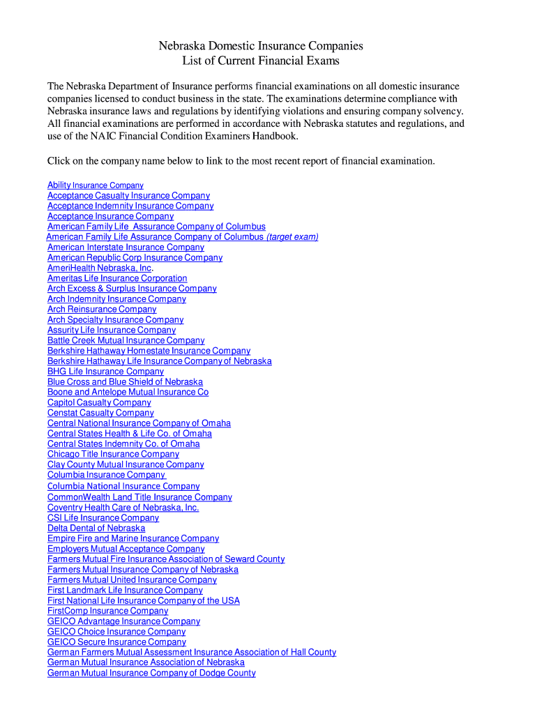 Get the free Nebraska Domestic Insurance Companies