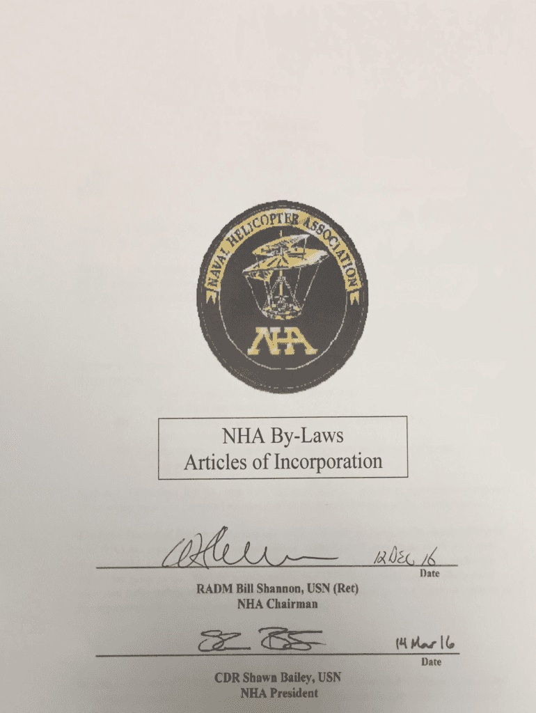 Get the free NHA By-Laws Articles of Incorporation - Naval Helicopter Association - nhea membercl...